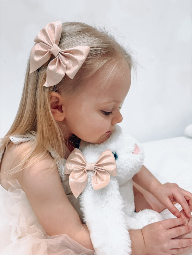 2 Pastel Pink Glitter Hair Bows