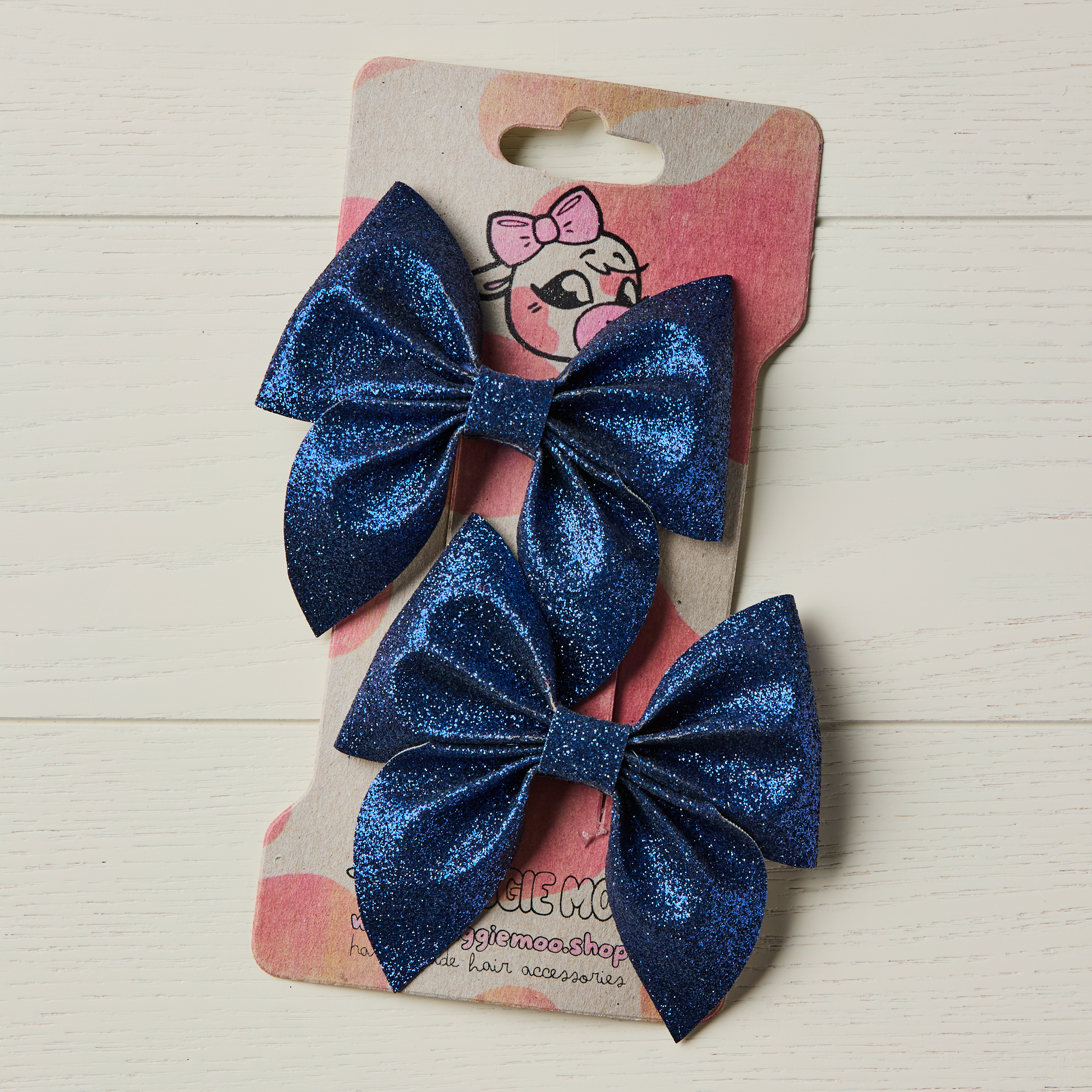 Add a touch of classic charm to any look with these handmade navy blue hair bows. The delicate shimmer of the fine glitter is perfect for those who appreciate a subtle sparkle. The timeless navy blue pairs effortlessly with school uniforms, everyday outfits as well as formal wear, making them a versatile addition to any hair bow collection.