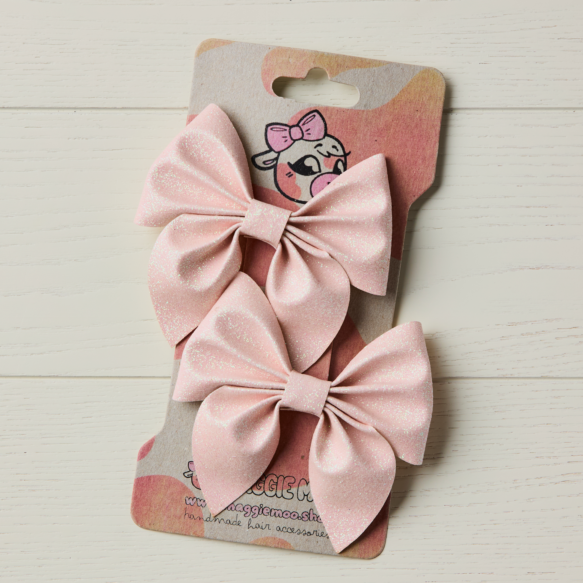 2 Pale Pink Glitter Hair Bows