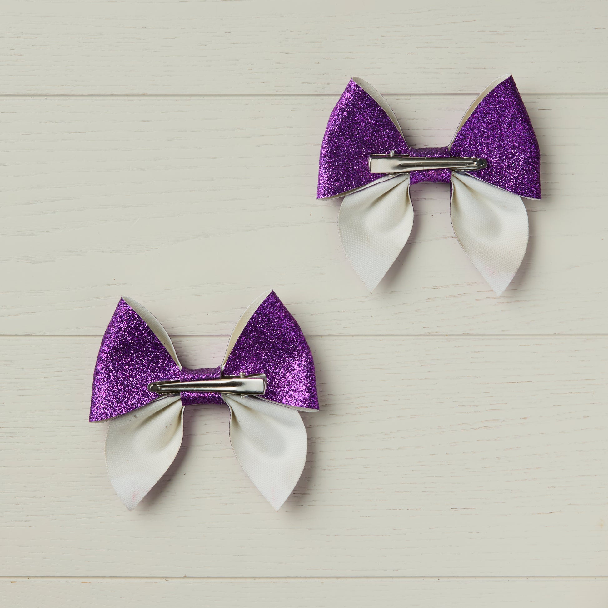 Unleash your inner magic with these enchanting purple butterfly clips. Handcrafted with shimmering fine glitter fabric, they capture the magic of twilight and mystery. Perfect for Halloween, fairy parties, or adding a mystical touch to everyday looks.