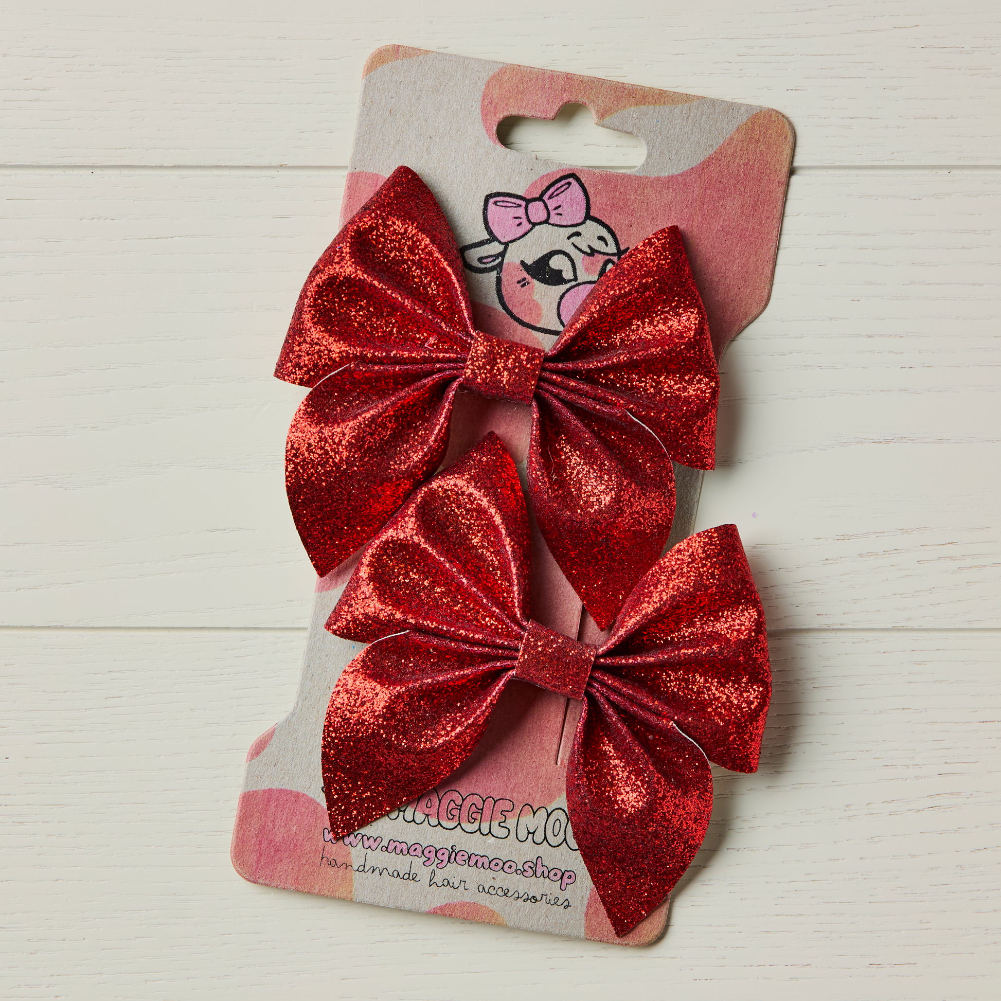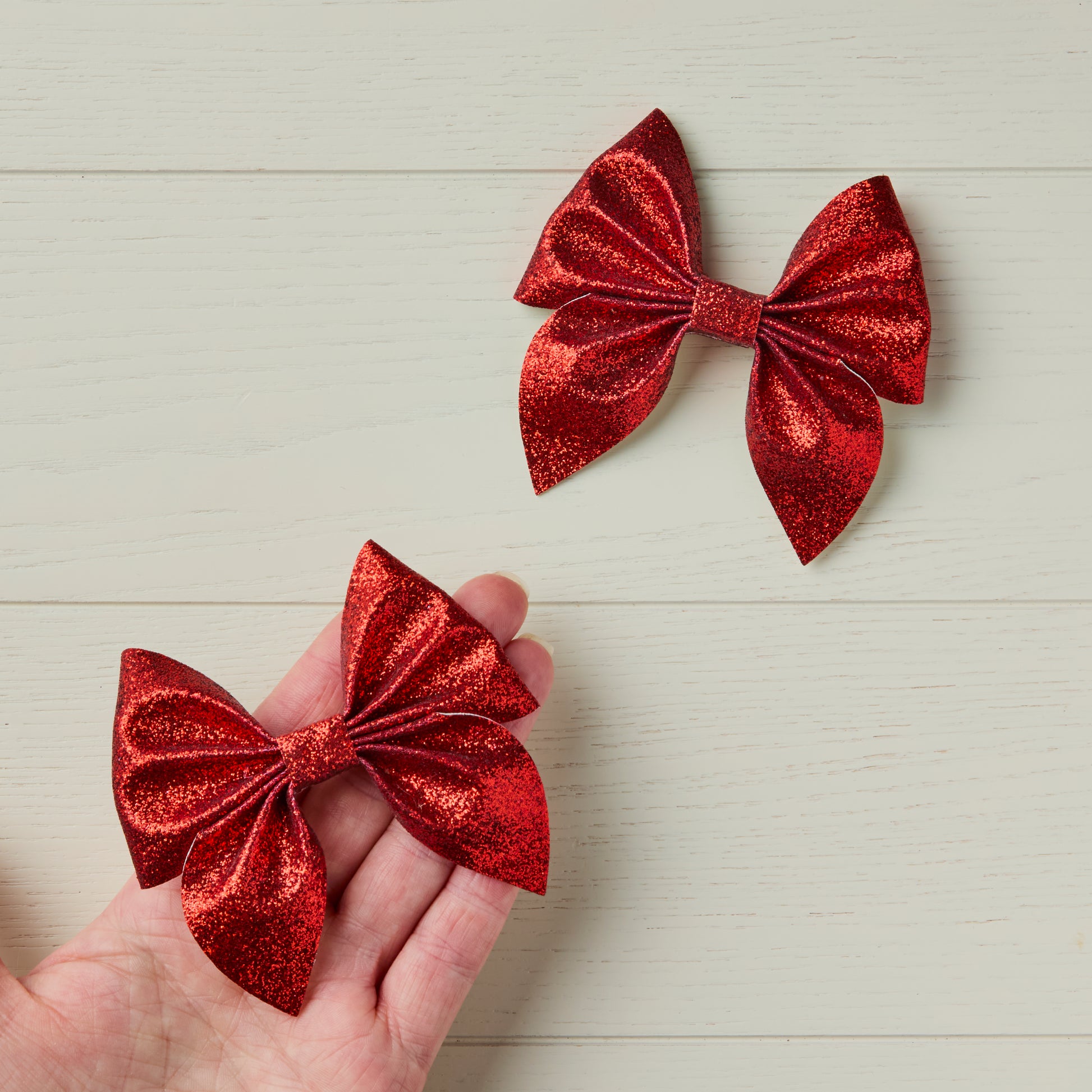 2 Red Glitter Hair Bows