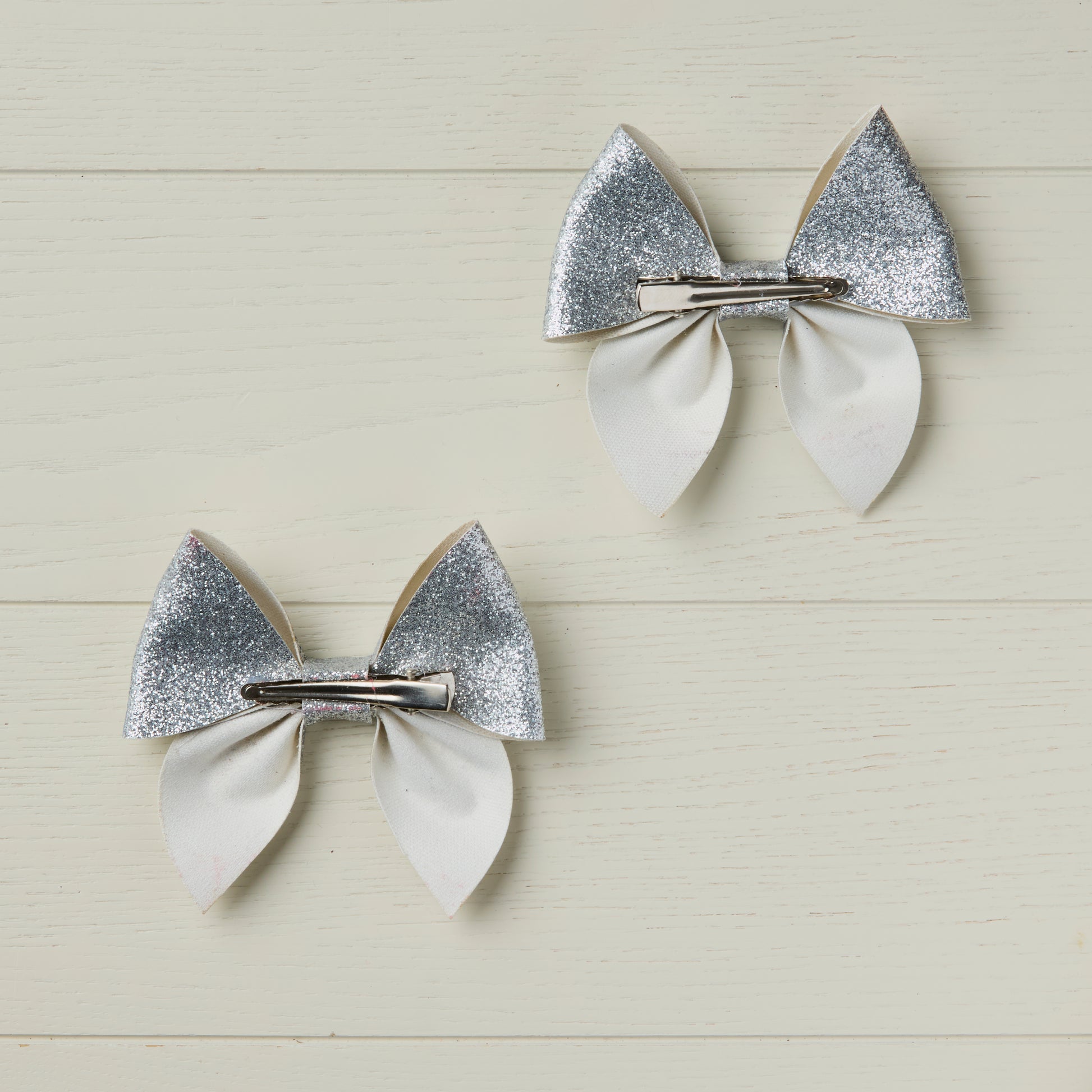 Crafted with fine glitter fabric, these delicate bows sparkle like stardust, adding a touch of magic to any outfit. Perfect for parties, special occasions, or just as a touch of everyday glamour. Their versatile silver colour makes them a perfect match for many colour scheme.