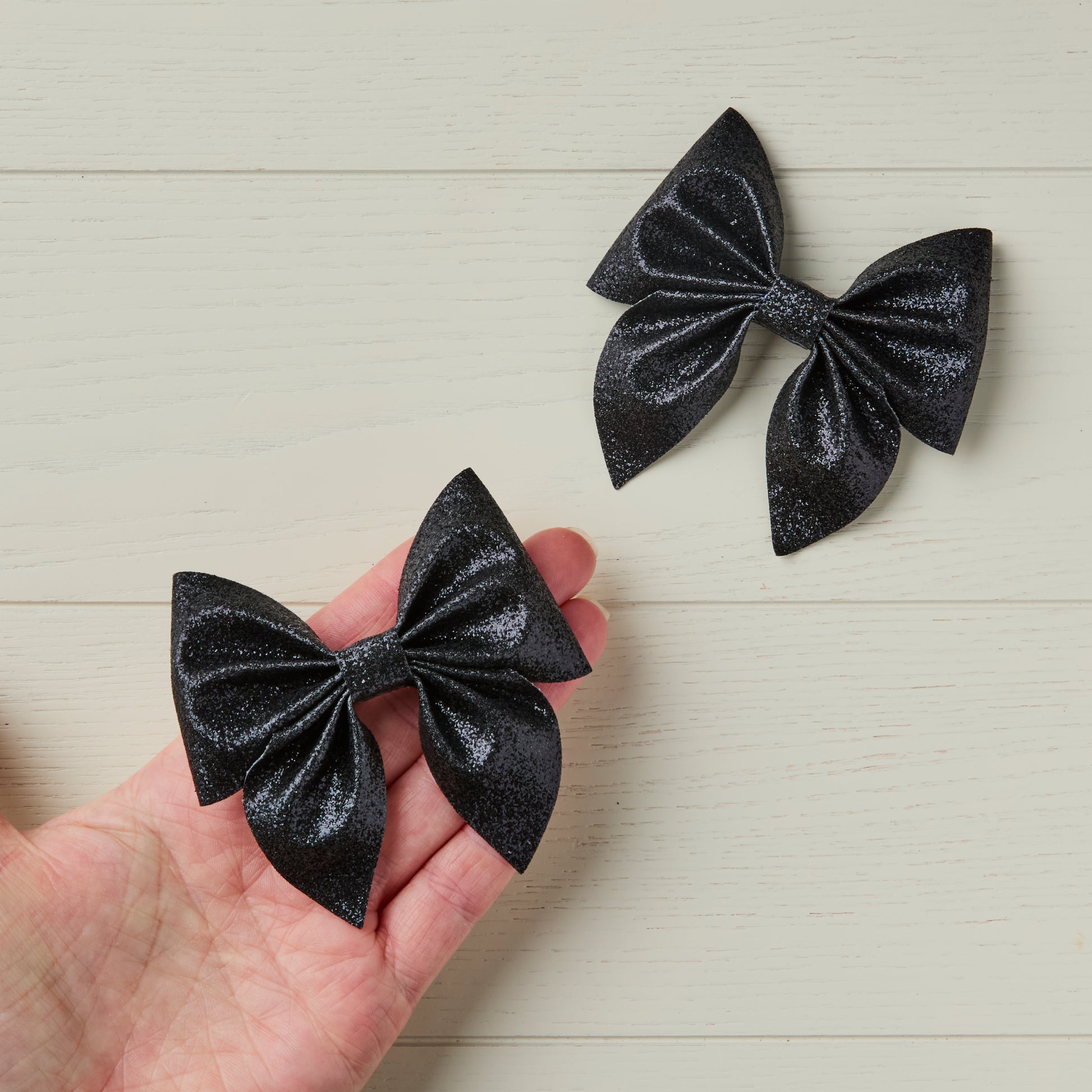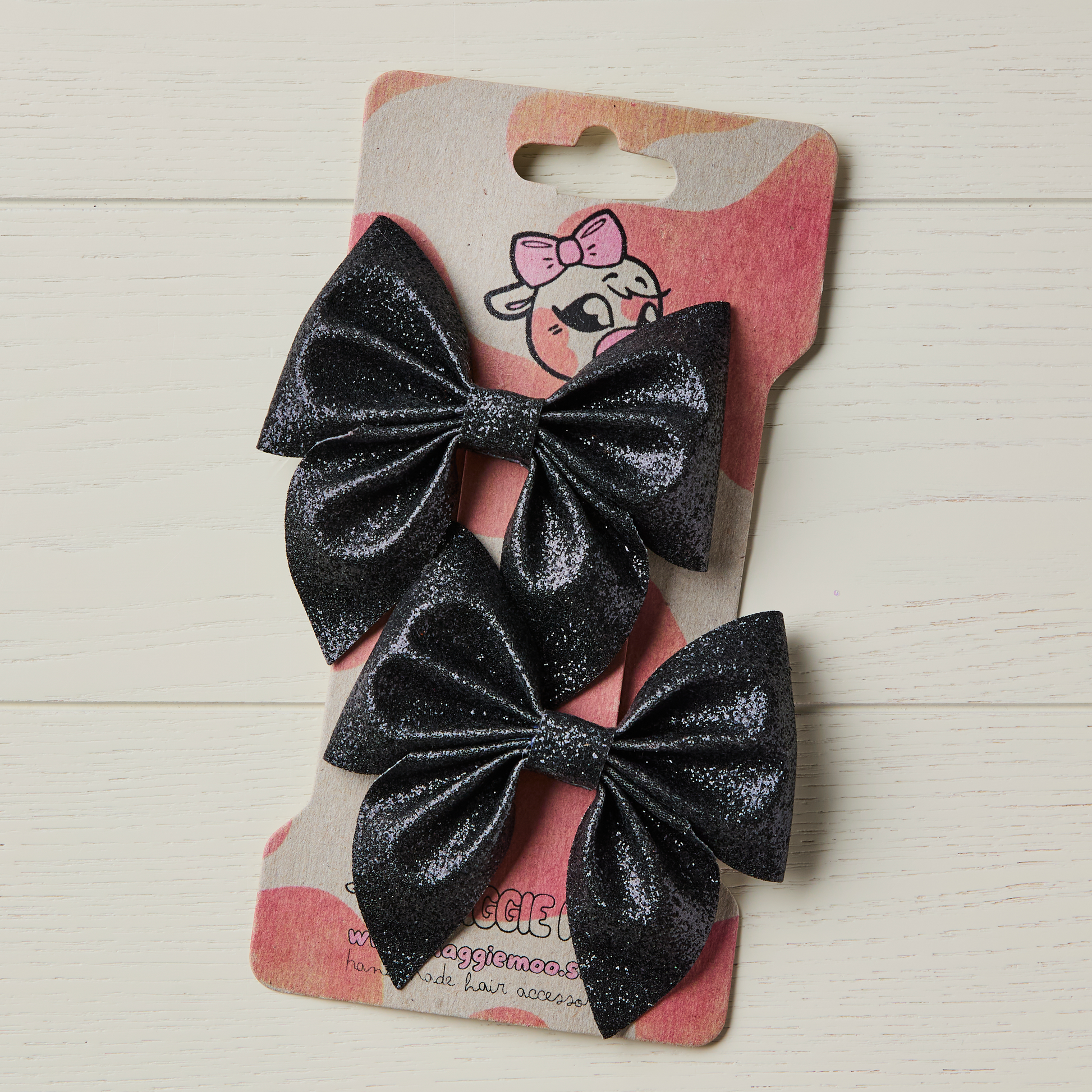 Step into timeless elegance with these handmade black hair bows crafted from shimmering fine glitter fabric. Just like the iconic little black dress, these bows are a universal classic - perfect for any occasion and effortlessly matching a wide range of colours and outfits. Whether it’s a formal event, a casual outing, or a festive celebration, these bows add a touch of chic sophistication to your look.