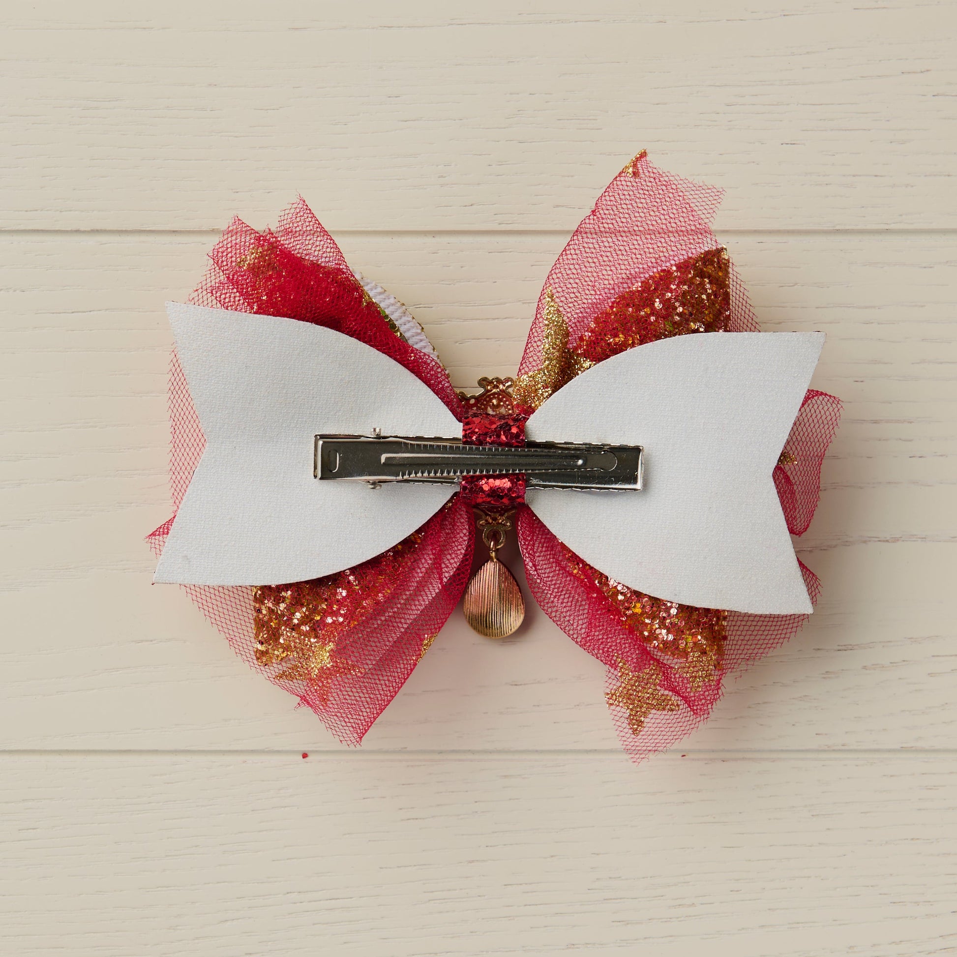 This large bow measures approximately 4.5 x 3 inches (11 x 8 cm) and fastens with a 55mm alligator clip.
