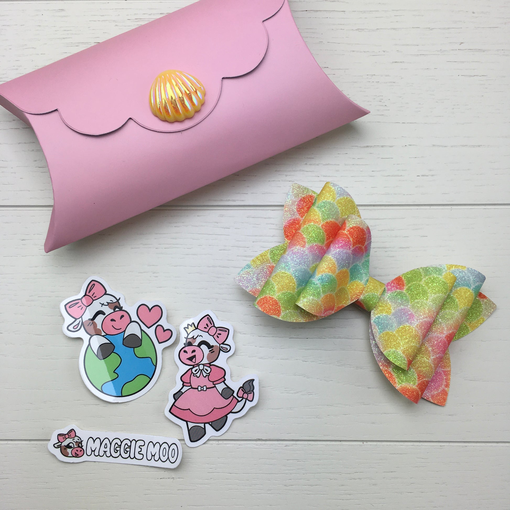 🐮 Three Maggie Moo stickers — two random designs and one logo sticker. (See photos for examples)