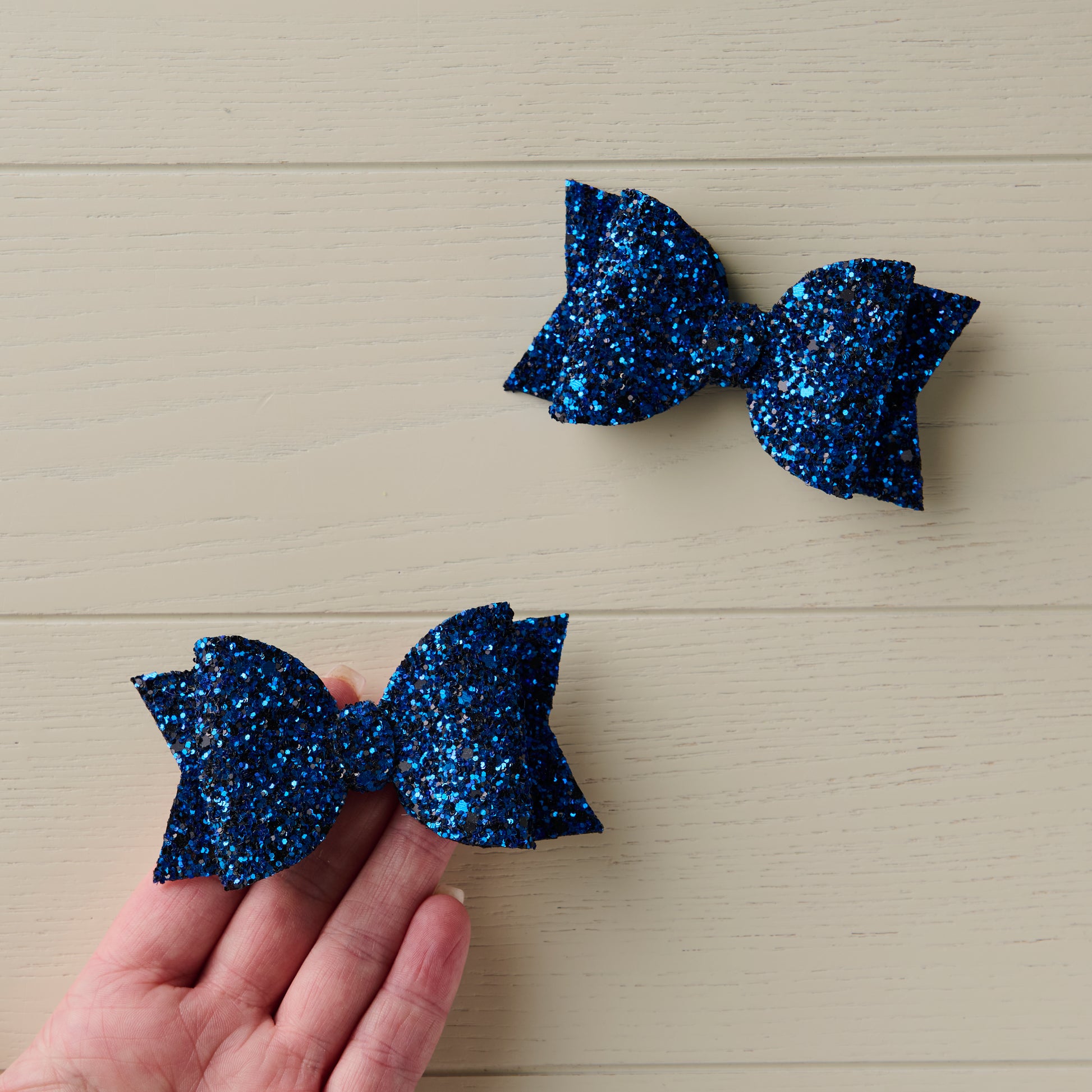 2pcs Royal Blue Jazz Glitter 3" Hair Bows